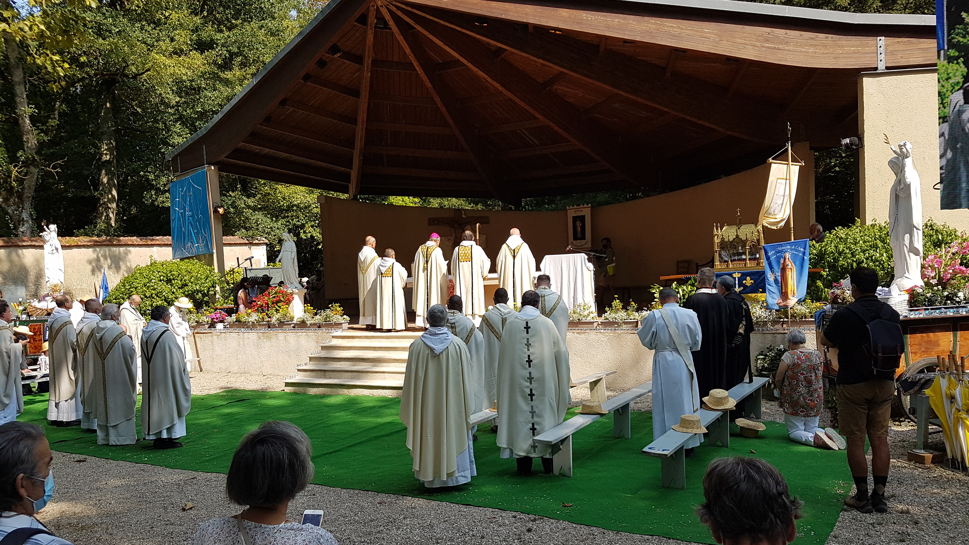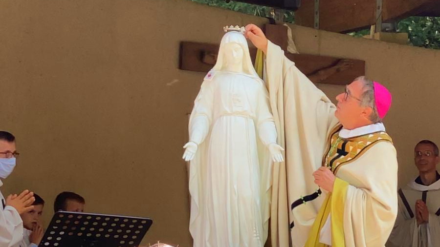 En couronnant la Vierge Marie de Pellevoisin, c’est finalement chacune et chacun d’entre nous qui est appelé à porter la couronne de la royauté, couronne d’épines et couronne majestueuse couverte de diamants, de jaspes et de rubis, comme nous dit l’Apocalypse 21. C’est ce chemin-là où la royauté de Dieu se dit dans la pauvreté d’une femme, la Vierge Marie, première de toutes les femmes, première de tous les hommes à être couronnée de cette couronne d’amour que nous recevons et que nous avons à porter au monde comme une bonne nouvelle et comme une espérance.