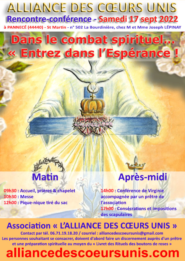 Inscription le plus tôt possible pour participer à l’évènement et/ou demander l’imposition aux scapulaires (ou commander le « Livret des Rituels des Boutons de Roses »), merci :